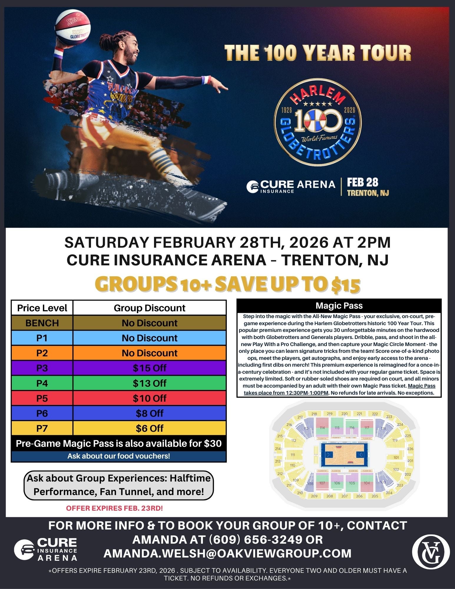 - CURE Insurance Arena family shows, sporting events, and concerts are always more enjoyable with friends! A group can truly be made up of anyone- Boy Scout packs, Girl Scout troops, churches, sports teams, corporate companies, schools, recreation centers, and local families. You receive a discount per ticket. We will work with you one-on-one to reserve best-available seats in the same section so everyone in your group has an enjoyable experience together.